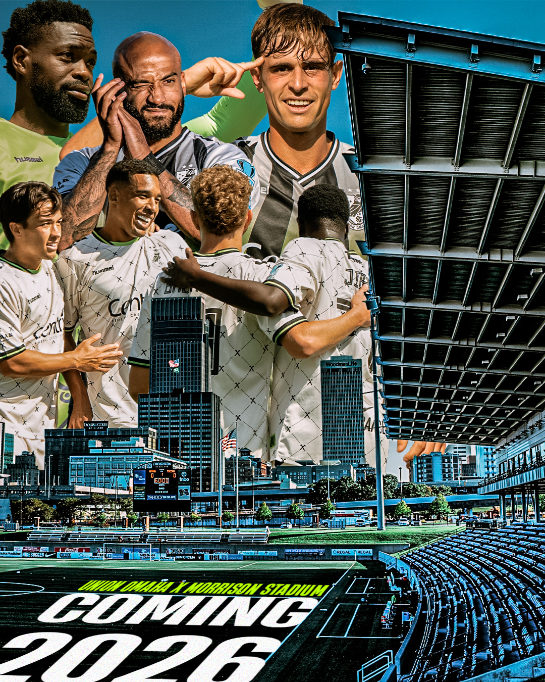 ticket packages GROUP TICKETS LATEST NEWS DOWNLOAD OUR APP JOIN OUR EMAIL LIST SHOP OUR TEAM STORE ONE MEANS ALL Our #1 jersey is retired – it belongs to Omaha. Our club is for everyone and together we are one in soccer, one in diversity, one in inclusivity, one in community, one in Omaha. All of us. LEARN MORE ABOUT OUR PURPOSE Bluesky X Instagram Facebook YouTube Mail UNION OMAHA ANNOUNCES VINCENZO CANDELA AS HEAD COACH UNION OMAHA WILL PLAY 2026 SEASON AT CREIGHTON UNIVERSITY'S MORRISON STADIUM KNOW BEFORE YOU GO: 10/25 VS. SPOKANE VELOCITY Bluesky https://twitter.com/Union_Omaha Facebook Instagram YouTube